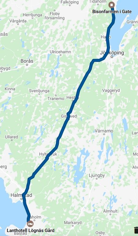 När det var dags att lämna Lögnäs visste vi inte riktigt vart vi skulle, men vi åkte norr ut, tog sikte på Karlsborg, men hamnade i Gate på Bisonfarmen som vi besökte för 3 år sedan.